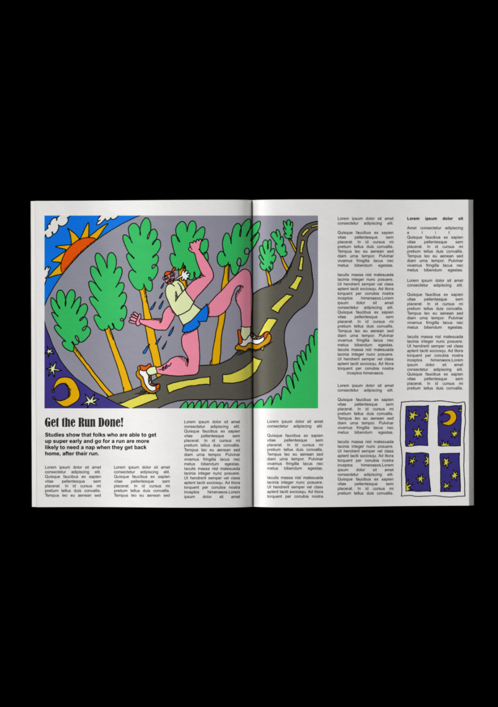 I made this illustration with Editorial Illustrations in mind. This is something I've been keen to learn more about and practice in my work. I thought about how the illustration would enhance and support the written text, adding visual storytelling to a page.I added it to a magazine mock up with a humerous title and some text around, as well as adding a smaller spot illustration in the bottom right hand corner. This was super helpful to show folks that my work could work well as editorial pieces too!